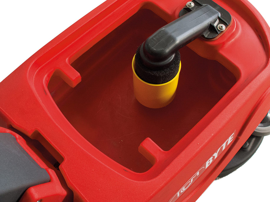 De Byte II is een professionele schrobzuigmachine om middelgrote tot grote oppervlakken snel en efficiënt te reinigen. De machine is leverbaar in twee versies: met één schijf borstel van 530 mm breed of met twee schijf borstels, deze heeft een breedte van 610 mm.