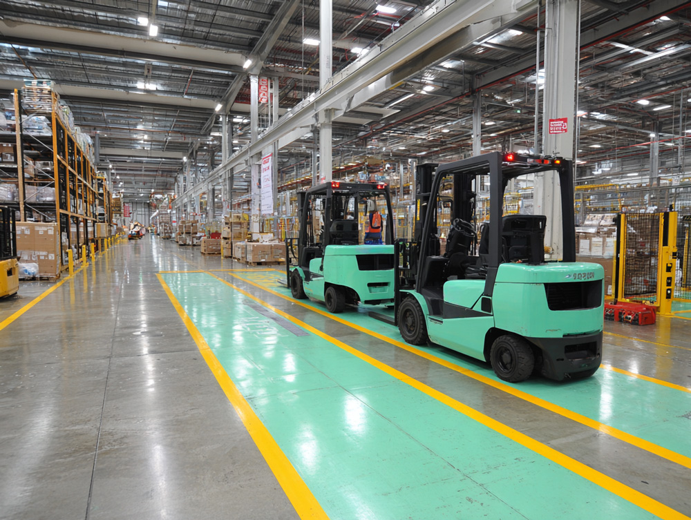 - Scheid voetgangers en heftrucks met duidelijke looproutes